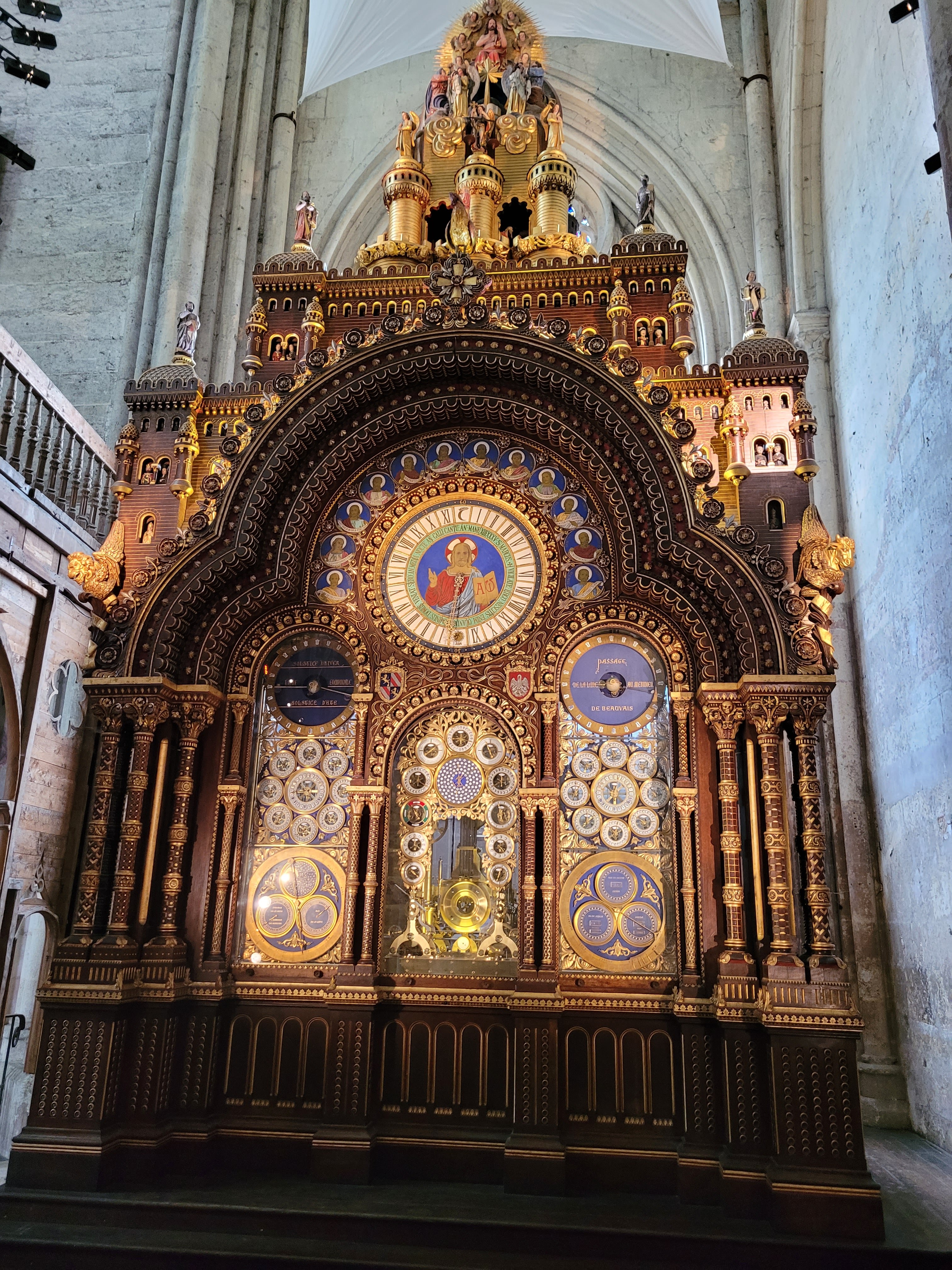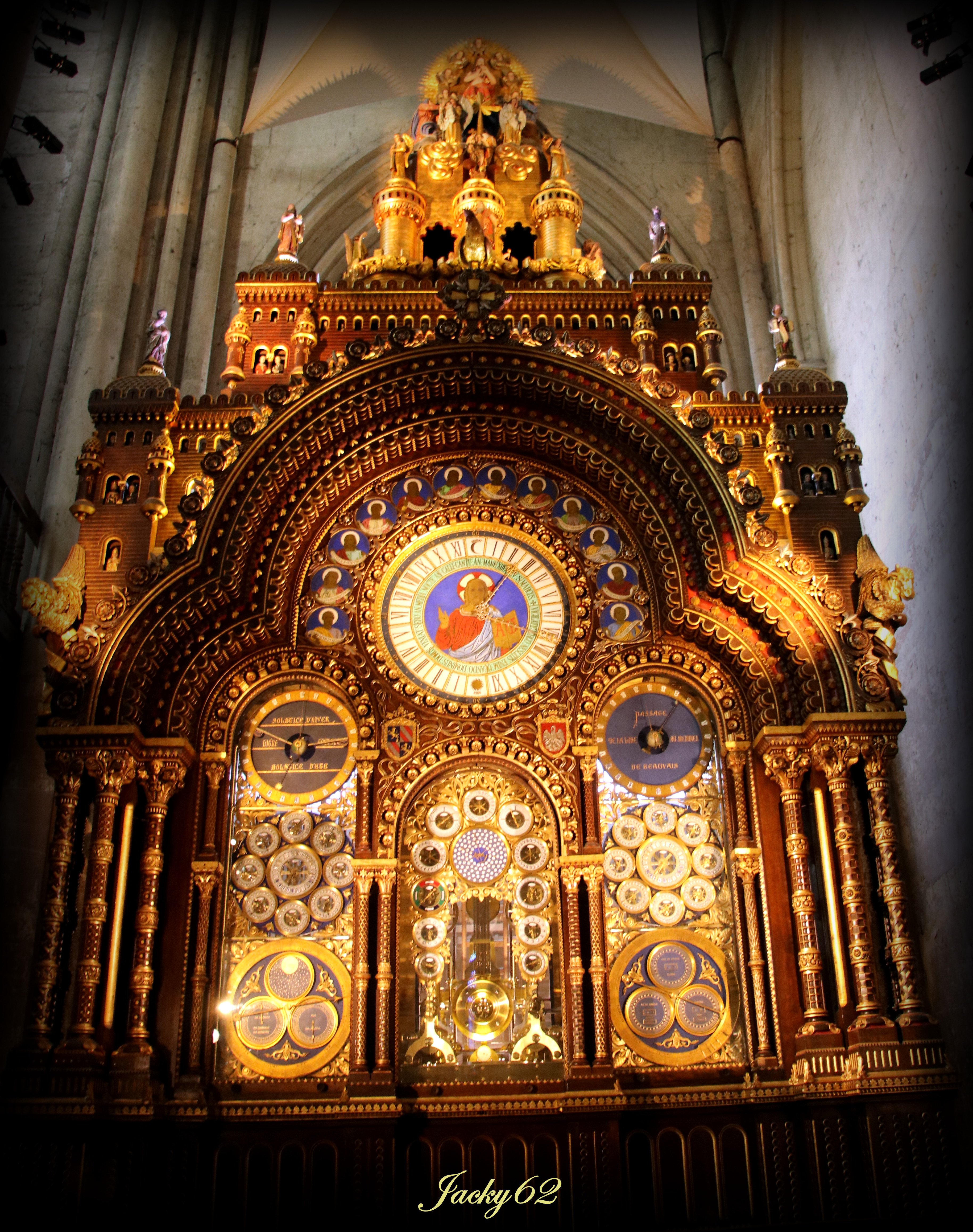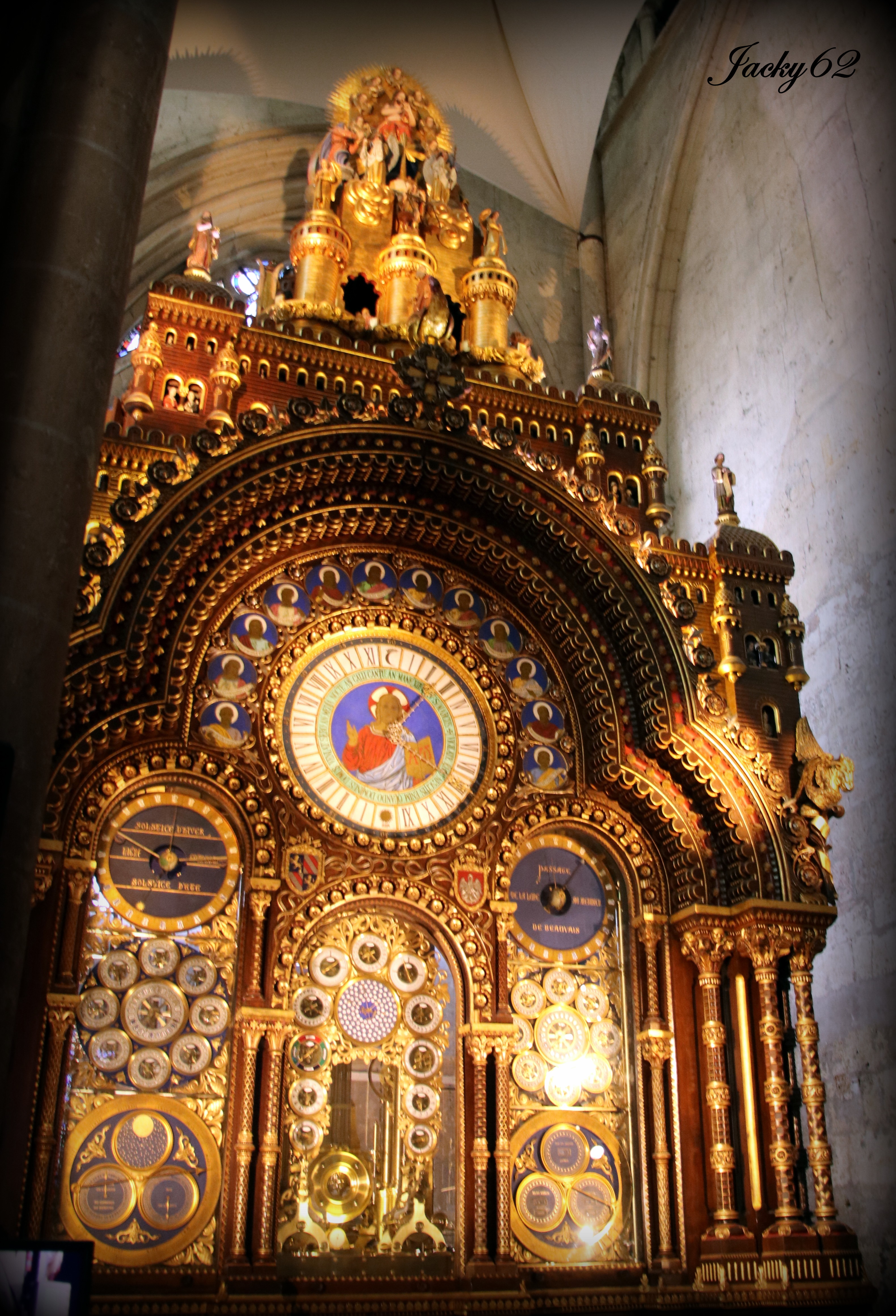 Horloge astronomique de la Cathédrale de Beauvais (1865-1868) L'horloge possède : . environ 90 000 pièces mécaniques en acier et en laiton, . 53 cadrans en émail (dont 52 en façade), . 63 automates, et sonneries, . L'ensemble est actionné par un moteur principal et 14 moteurs secondaires. Le meuble réalisé à partir des plans du Père Piérart, frère des écoles chrétiennes, de style romano-byzantin, mesure : . 12 m de haut, . 5,12 m de large, . 2,82 m de profondeur, . sa décoration est inspirée de la Bible. #Beauvais #CathédraleDeBeauvais #Oise #HautsDeFrance #Picardie