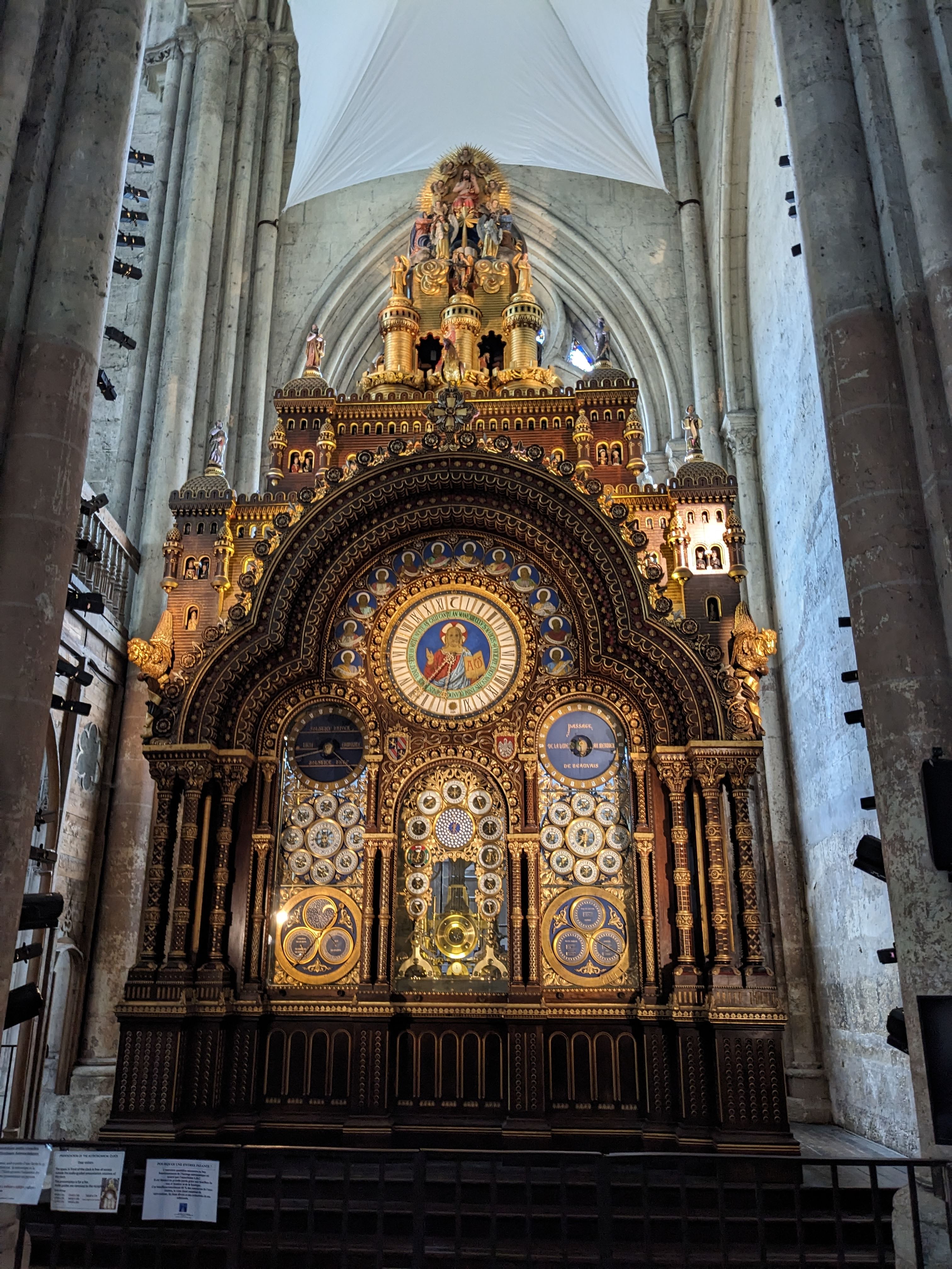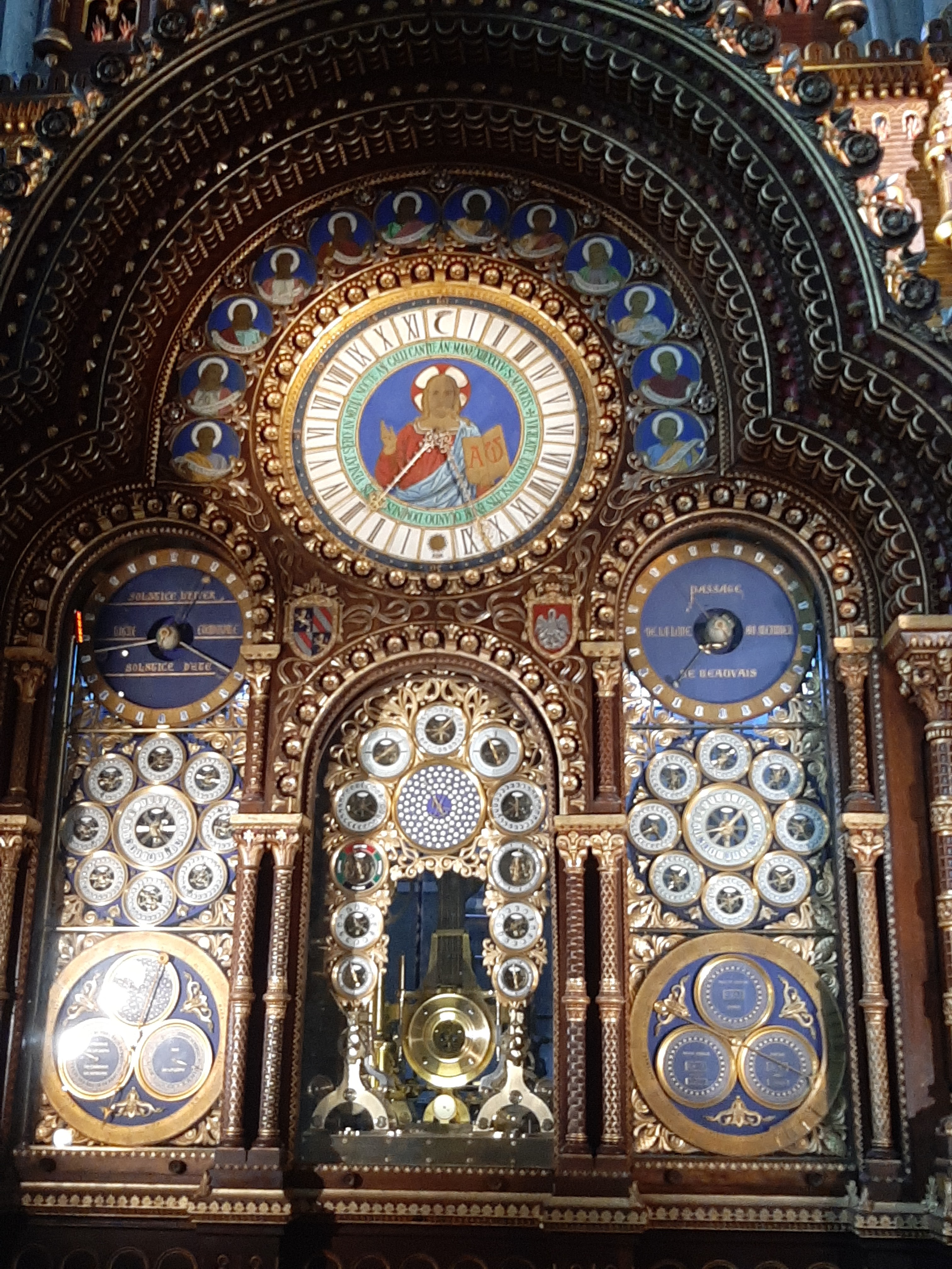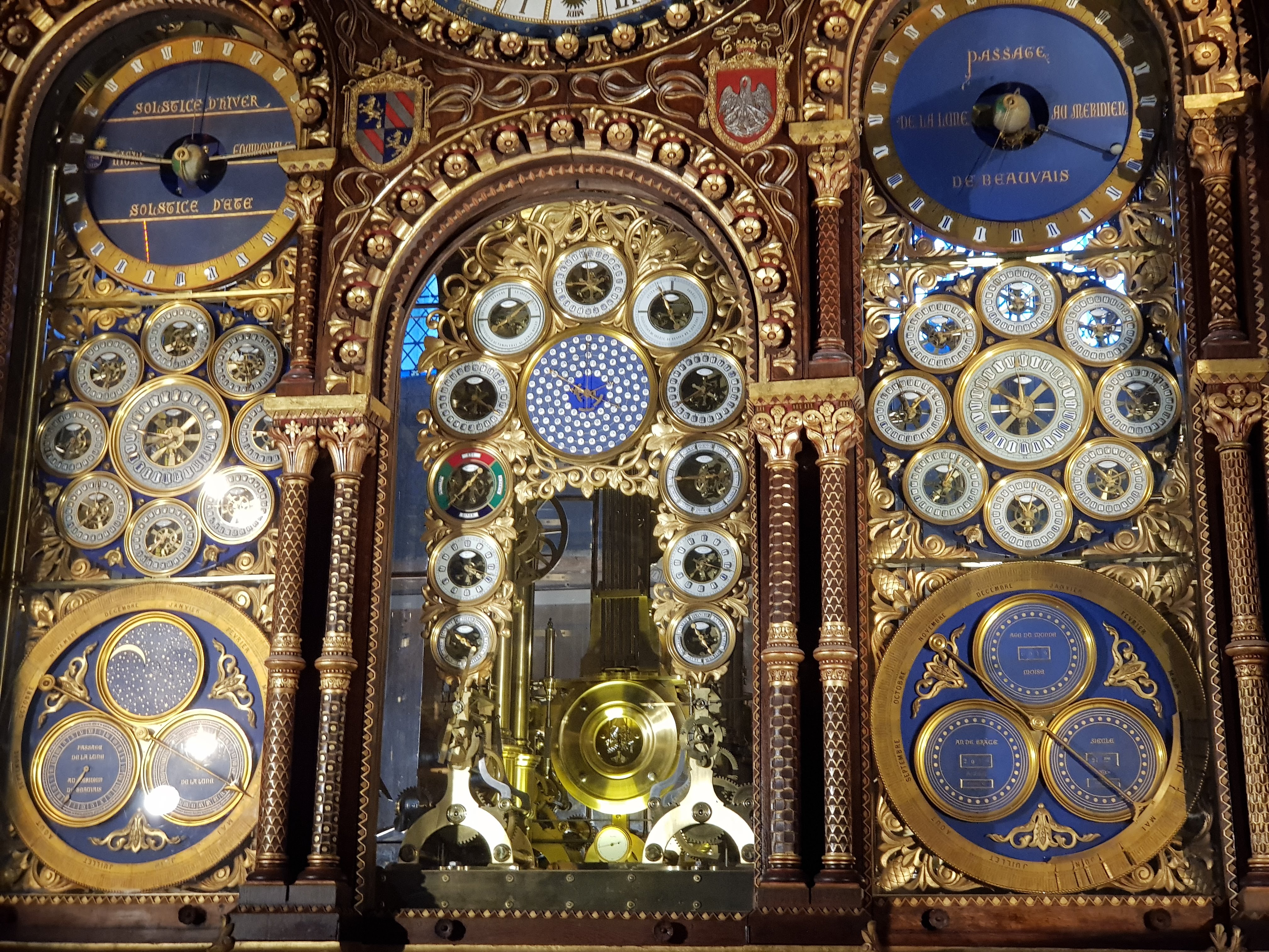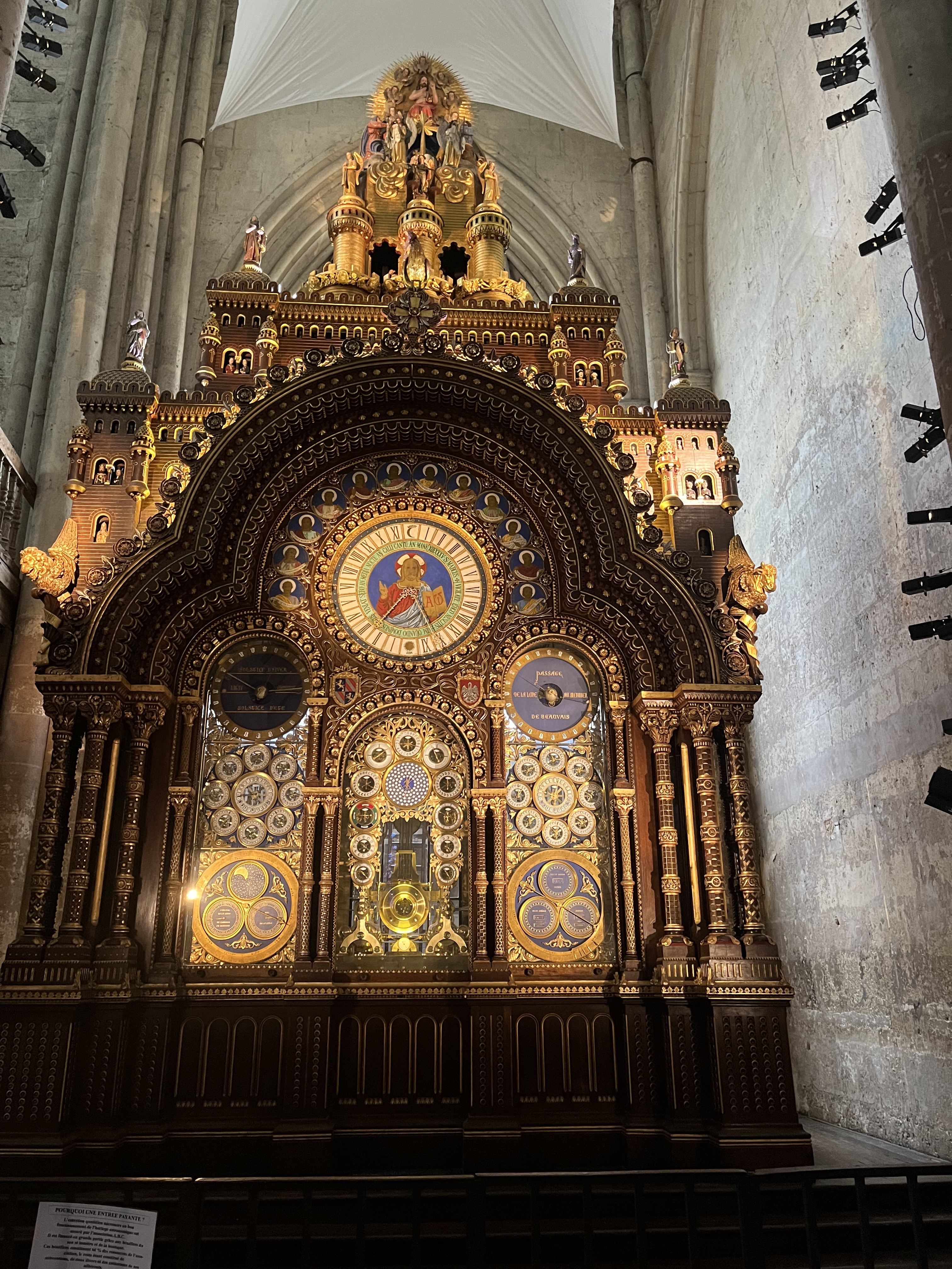Horloge astronomique de la Cathédrale de Beauvais (1865-1868) L'horloge possède : . environ 90 000 pièces mécaniques en acier et en laiton, . 53 cadrans en émail (dont 52 en façade), . 63 automates, et sonneries, . L'ensemble est actionné par un moteur principal et 14 moteurs secondaires. Le meuble réalisé à partir des plans du Père Piérart, frère des écoles chrétiennes, de style romano-byzantin, mesure : . 12 m de haut, . 5,12 m de large, . 2,82 m de profondeur, . sa décoration est inspirée de la Bible. #Beauvais #CathédraleDeBeauvais #Oise #HautsDeFrance #Picardie