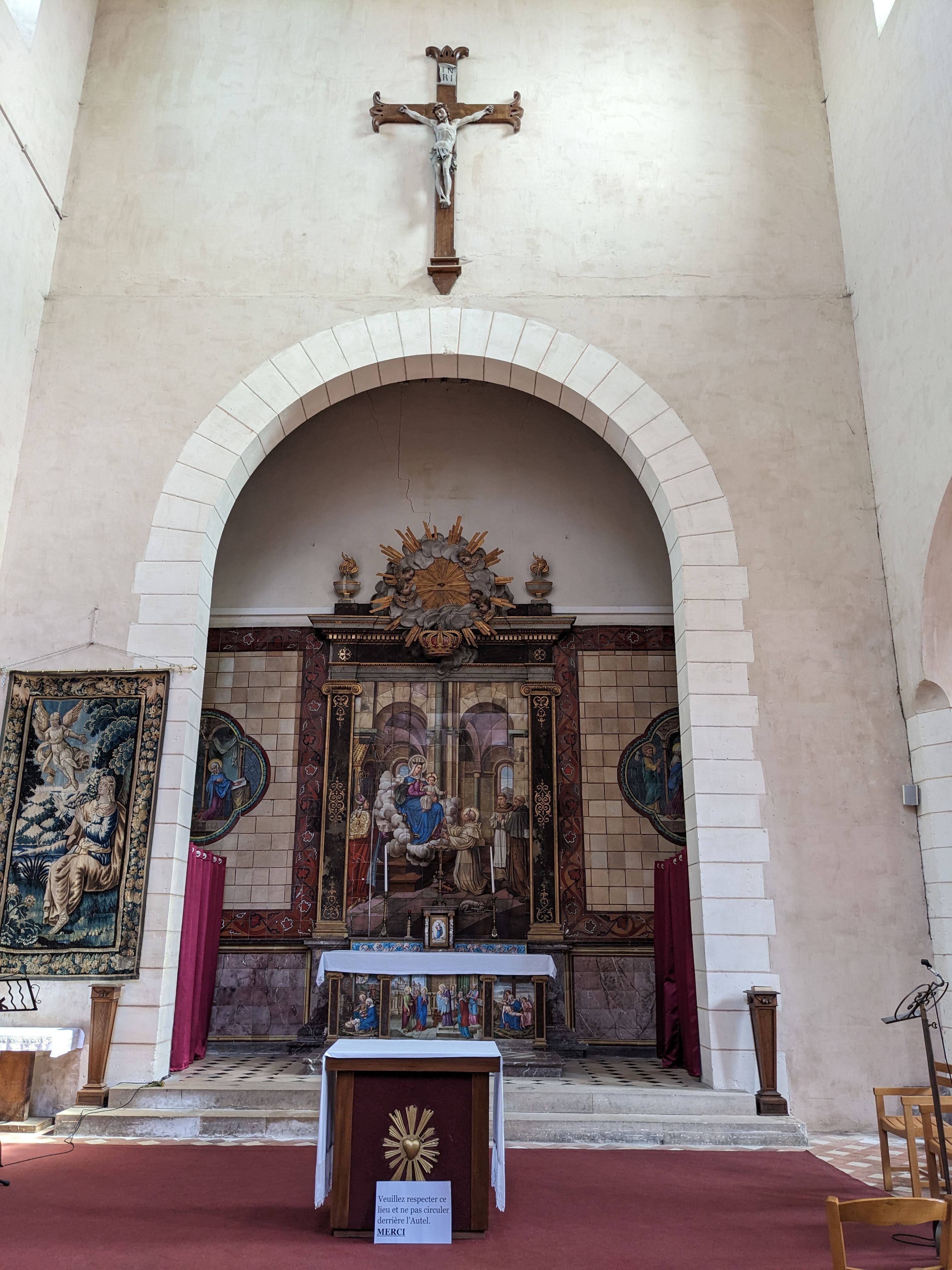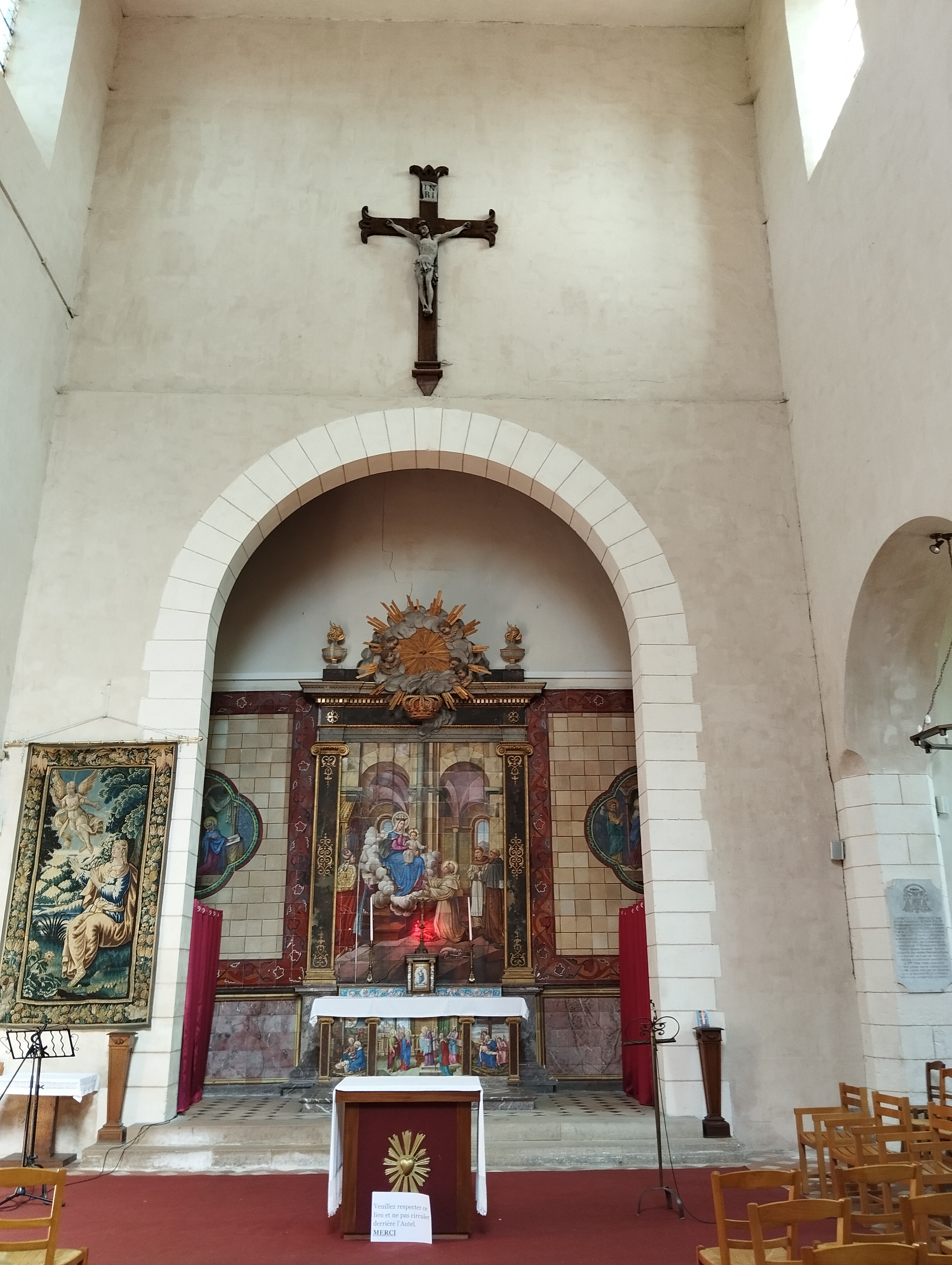 Ensemble tronqué, tirands et étalement tous azimut; l'édifice est très peu rassurant. Cependant quelques beaux vitraux et tableaux... à se perdre le jour de l'écroulement. L'Église n'est pas faite que de pierres sauf celles qui sont vivantes.