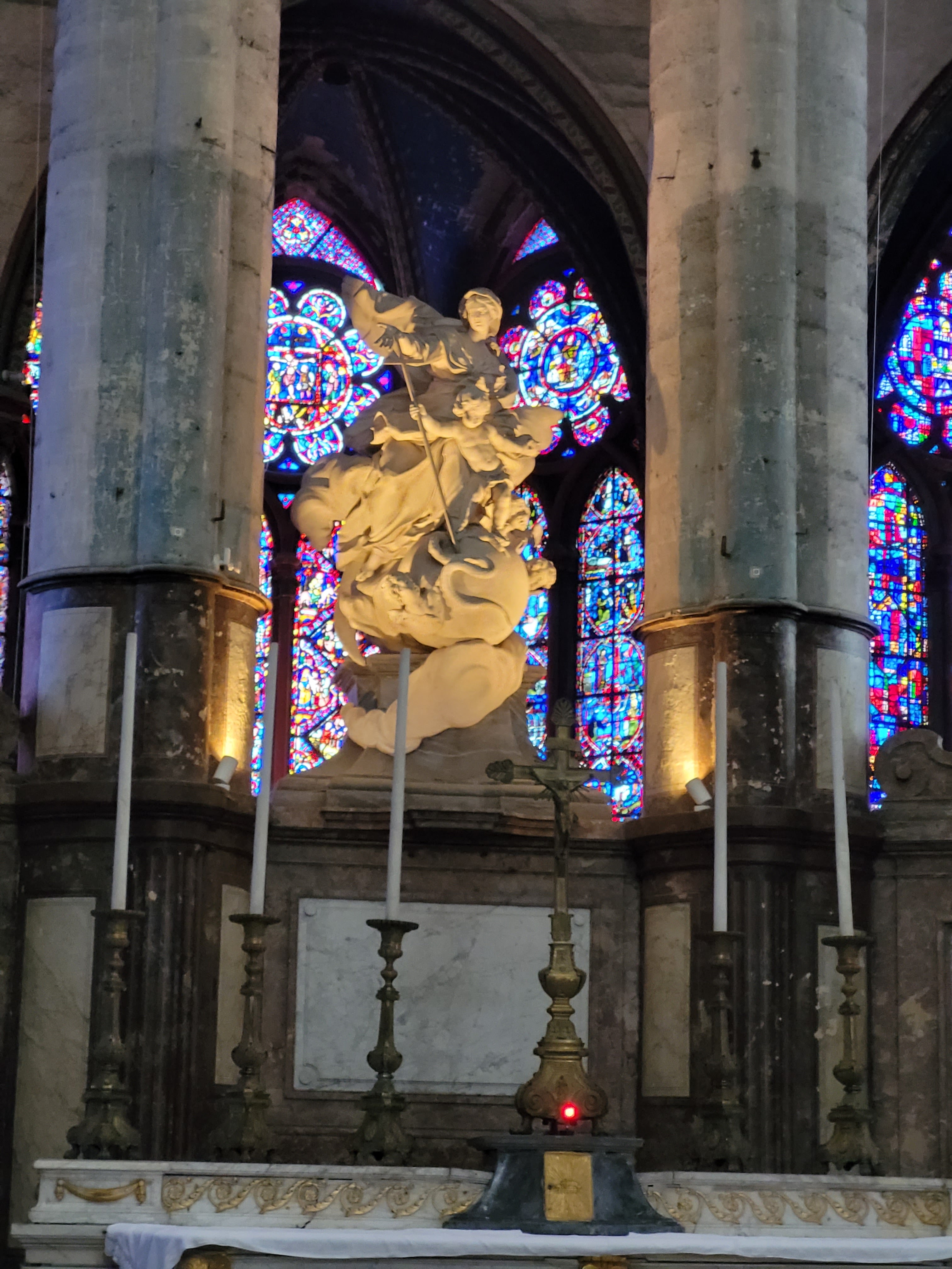 Une magnifique cathédrale, belle et imposante, avec de sublimes vitraux. L'orgue et son hauteur sont impressionnantes ! La cathédrale a été récemment nettoyée de l'intérieur, son sol scintille presque. Les photos sont prises lors de la messe de la Pentecôte, le dimanche 23 mai 2021 à 18h45