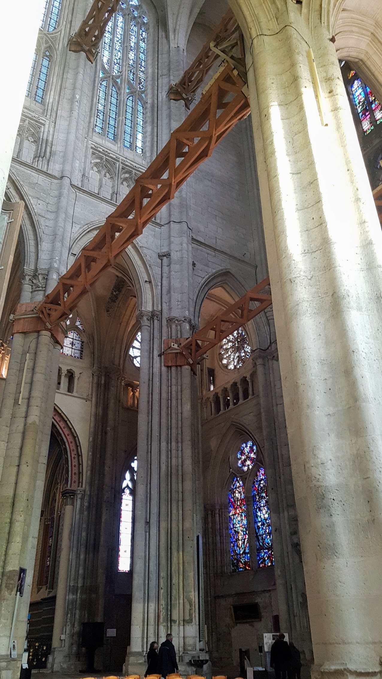 A quelques heures d'un décollage de l'aéroport de Paris-Beauvais, nos déambulations nous ont amenés jusqu'à la Cathédrale de Beauvais et sa silhouette si caractéristique (que l'on voit d'ailleurs très bien au survol de la ville). En se promenant dans le chœur gothique, on image sans mal les dimensions gigantesques que le bâtiment aurait dues afficher si il avait été terminé comme prévu. On y admirera l'horloge astronomique et les vitraux variés et l'on se laissera surprendre par les nombreux travaux de consolidations internes qui confèrent un sentiment de fragilité toute relative à un bâtiment d'apparence aussi robuste.